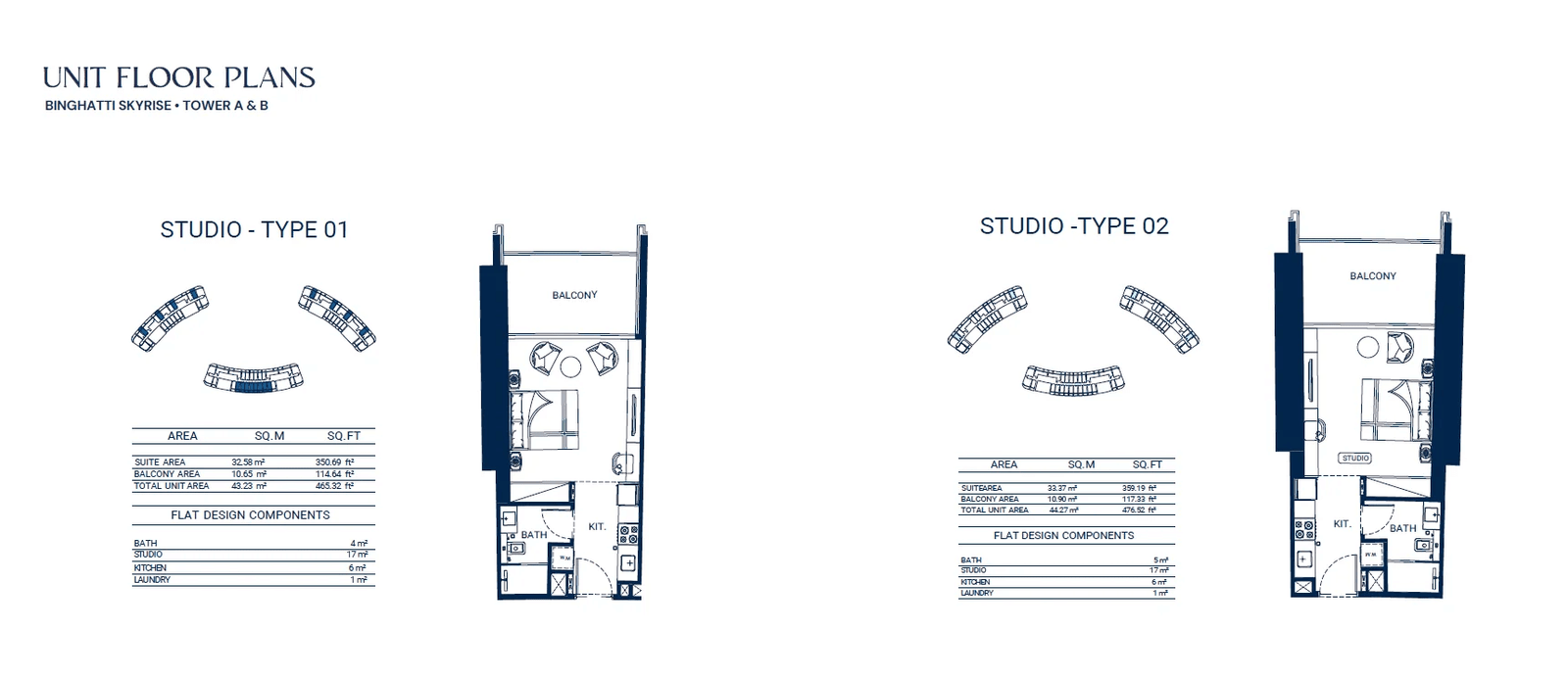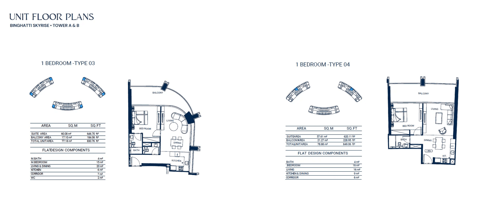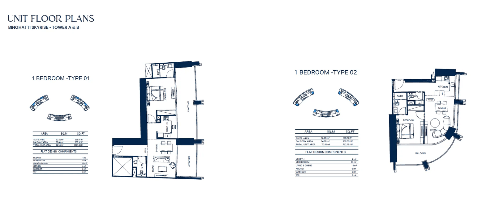 Inside Binghatti Skyrise, every detail has been carefully curated to elevate the living experience. Whether you choose a cozy studio or a large three-bedroom apartment, the interiors reflect modern elegance combined with functional layouts.