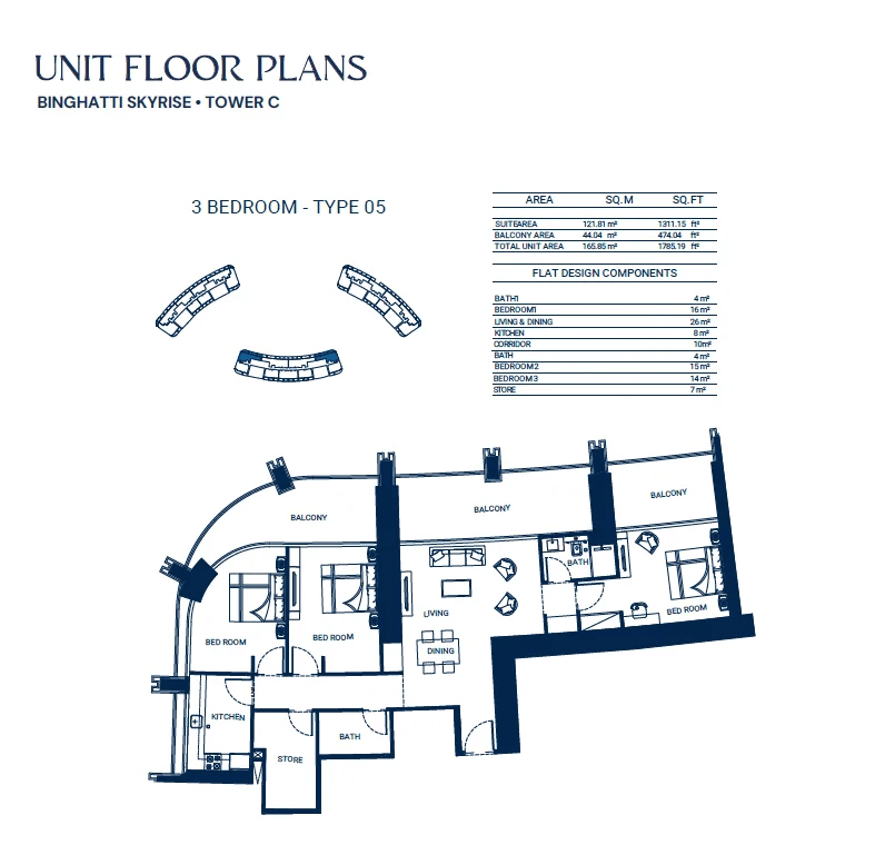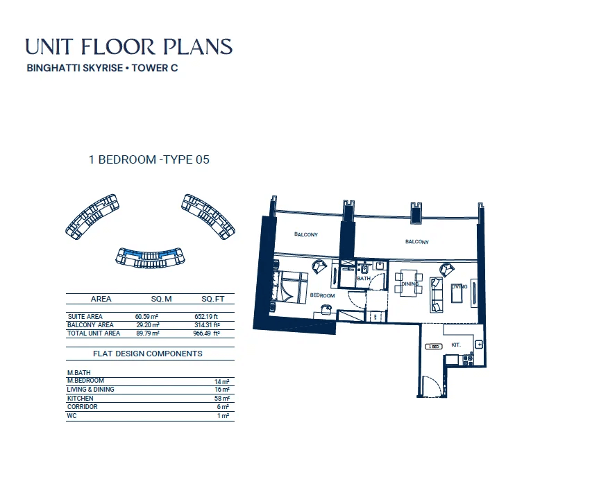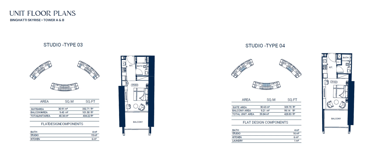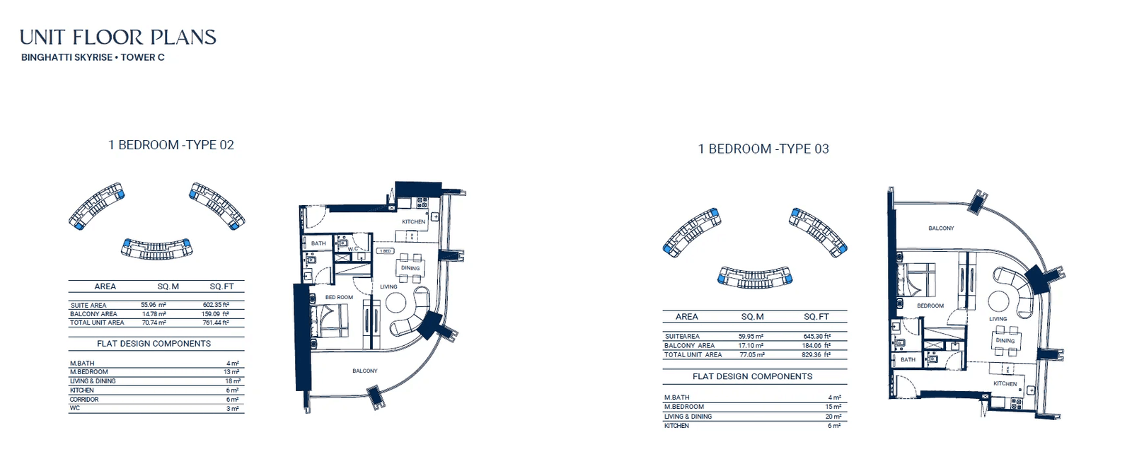 Inside Binghatti Skyrise, every detail has been carefully curated to elevate the living experience. Whether you choose a cozy studio or a large three-bedroom apartment, the interiors reflect modern elegance combined with functional layouts.